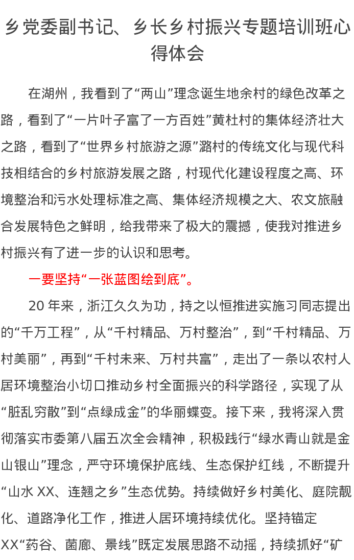 乡党委副书记、乡长乡村振兴专题培训班心得体会