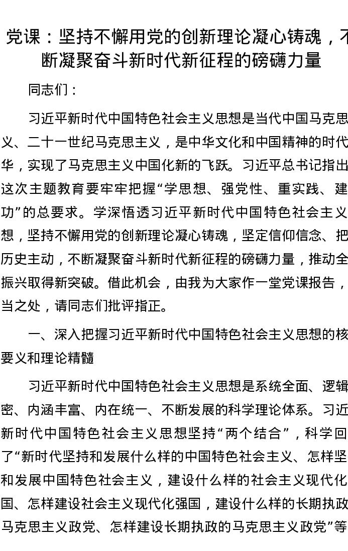 党课:坚持不懈用党的创新理论凝心铸魂,不断凝聚奋斗新时代新征程的磅礴力量