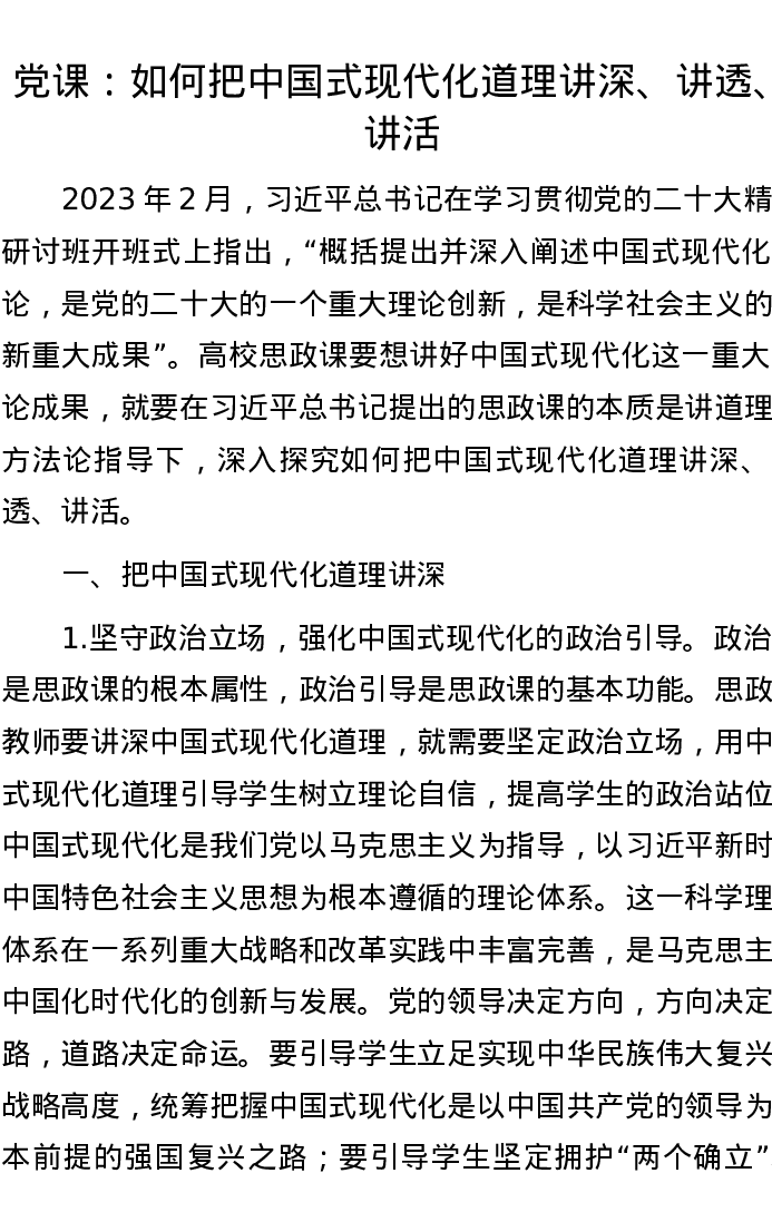 党课:如何把中国式现代化道理讲深、讲透、讲活