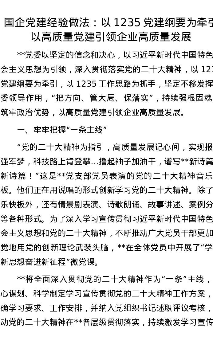 国企党建经验做法:以1235党建纲要为牵引 以高质量党建引领企业高质量发展