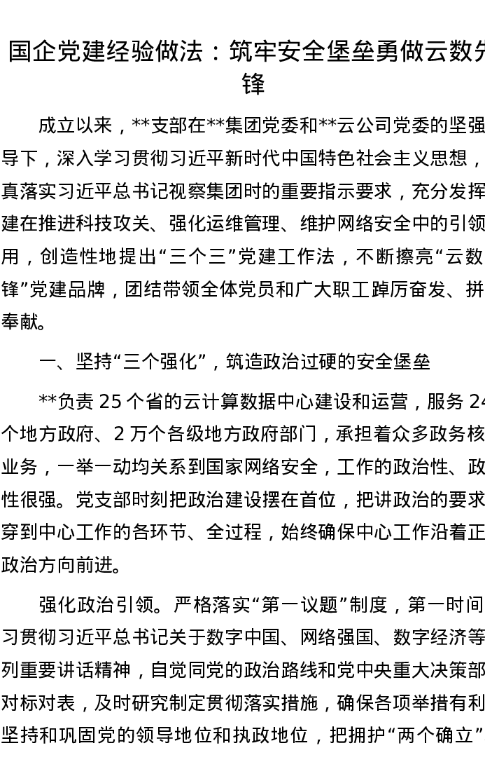 国企党建经验做法:筑牢安全堡垒 勇做云数先锋