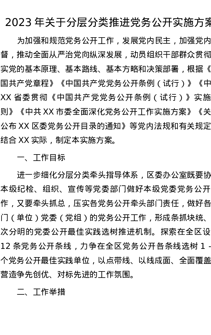 2023年关于分层分类推进党务公开实施方案