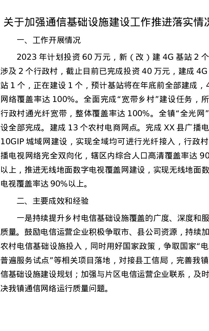 关于加强通信基础设施建设工作推进落实情况