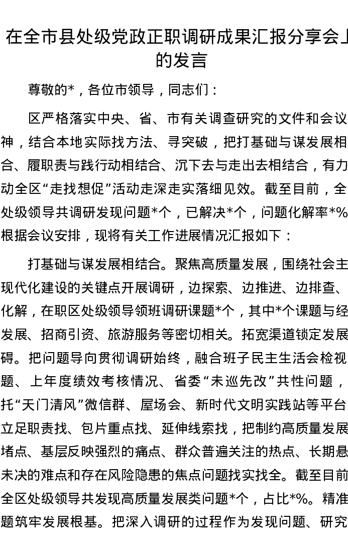 在全市县处级党政正职调研成果汇报分享会上的发言