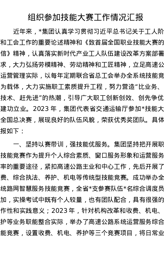 组织参加技能大赛工作情况汇报