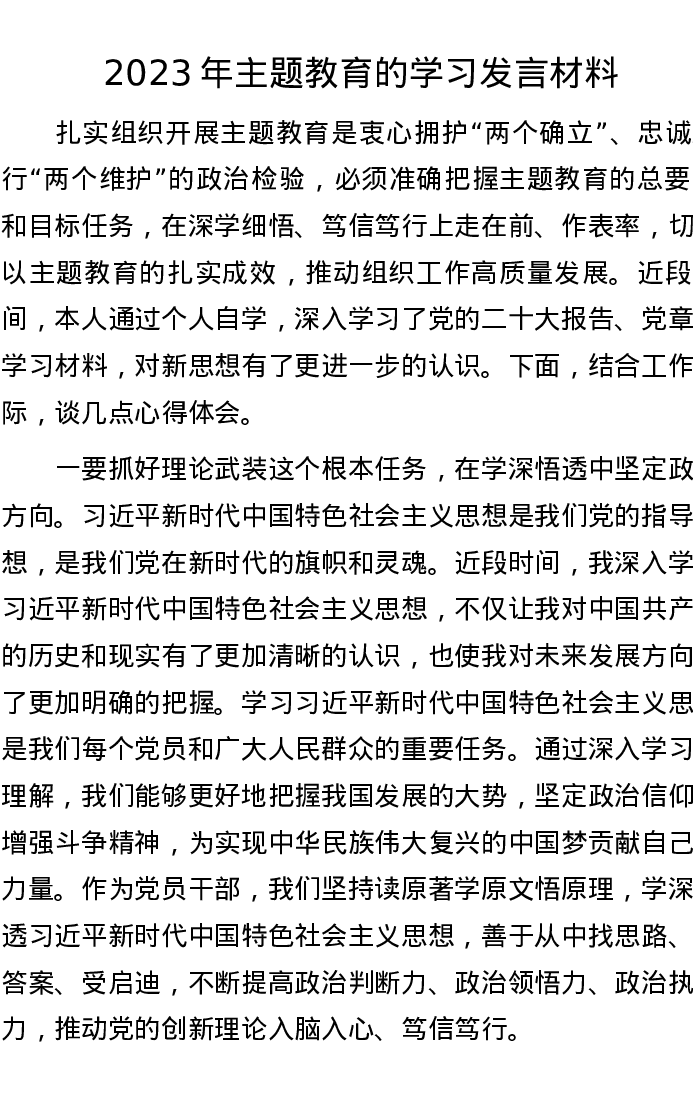 2023年主题教育的学习发言材料