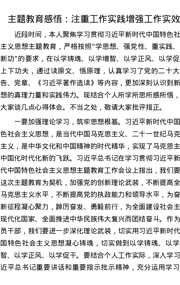 主题教育感悟:注重工作实践 增强工作实效