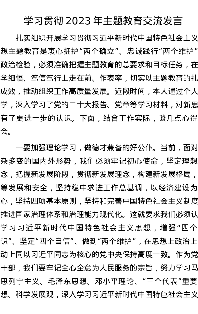 学习贯彻2023年主题教育交流发言