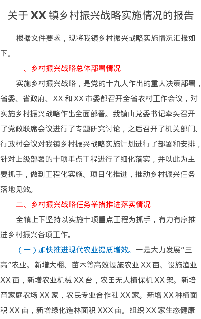 关于XX镇乡村振兴战略实施情况的报告