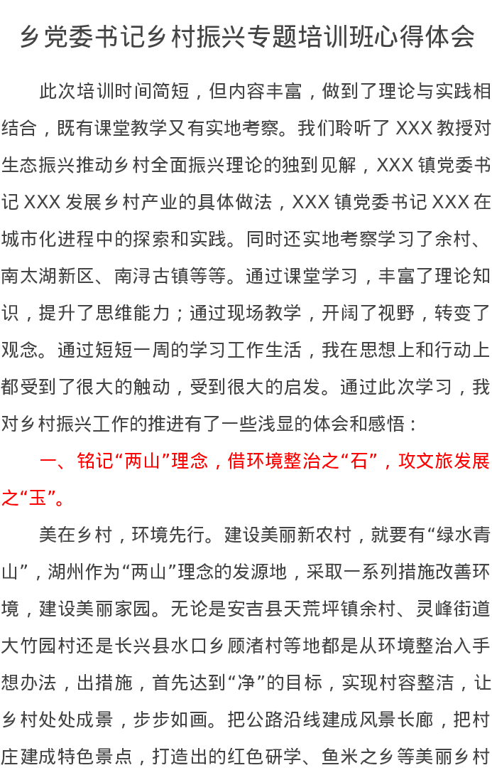 乡党委书记乡村振兴专题培训班心得体会