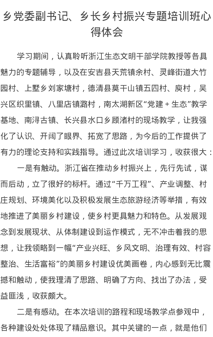 乡党委副书记、乡长乡村振兴专题培训班心得体会
