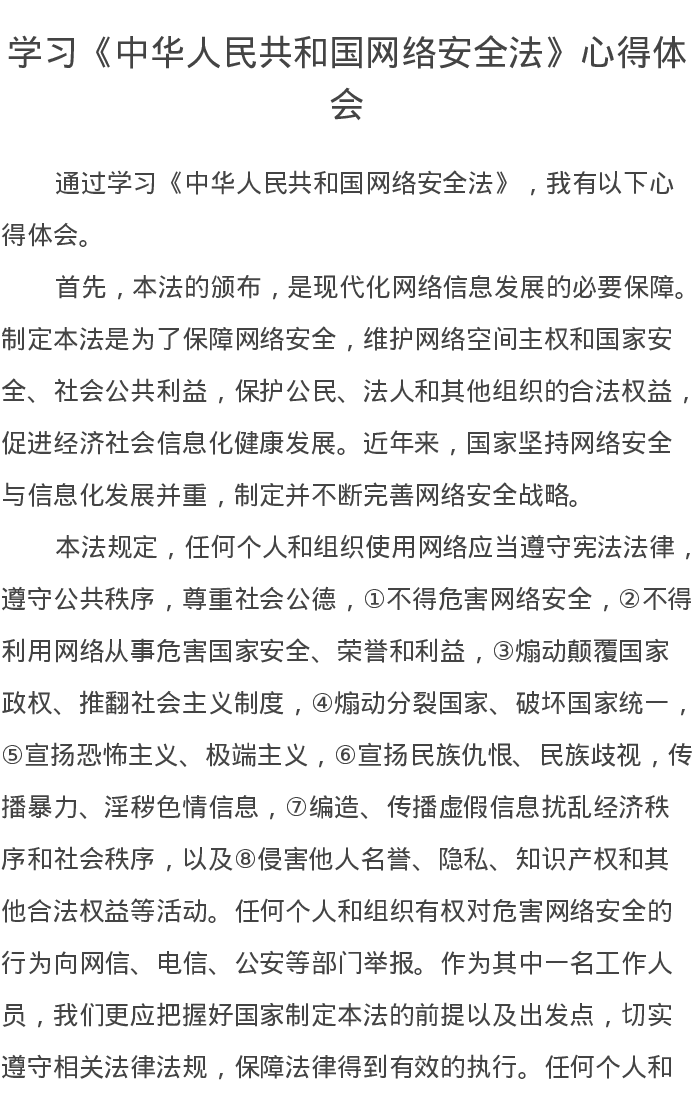 学习《中华人民共和国网络安全法》心得体会