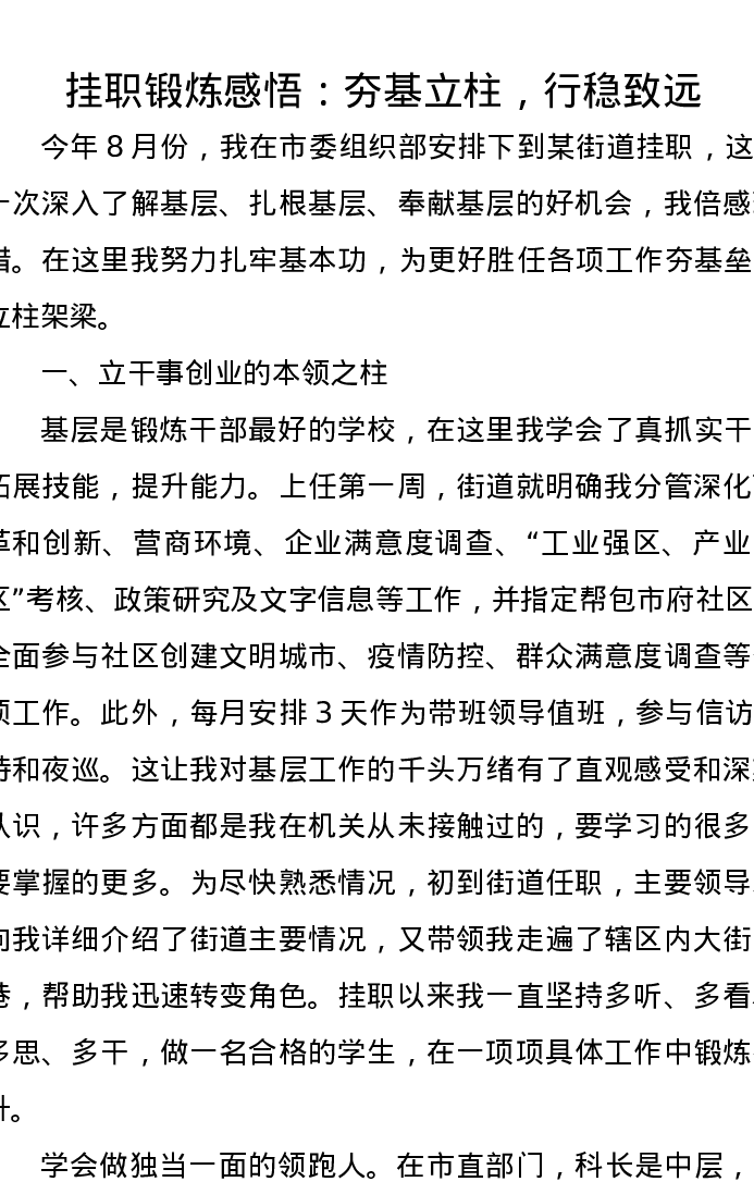 挂职锻炼感悟心得:夯基立柱,行稳致远
