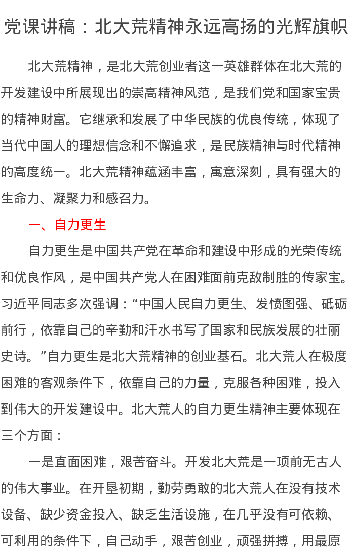 党课讲稿:北大荒精神永远高扬的光辉旗帜