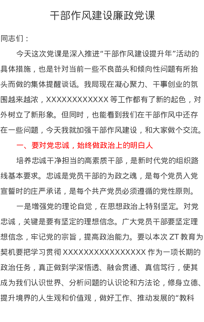 干部作风建设廉政党课讲稿