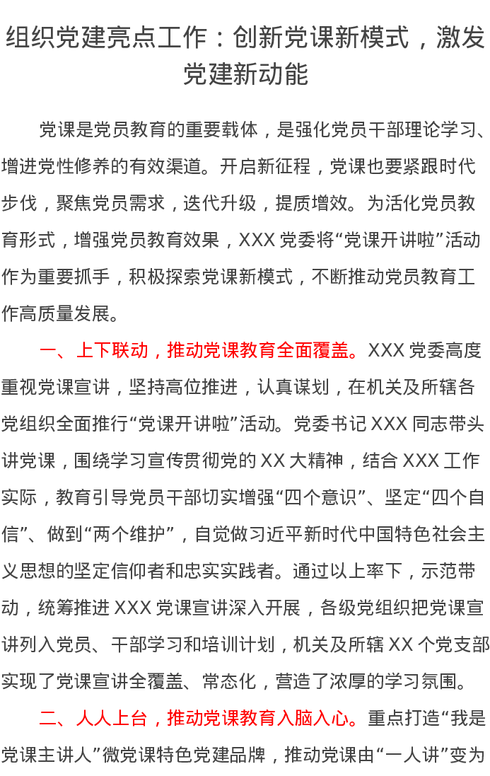 组织党建亮点工作:创新党课新模式,激发党建新动能