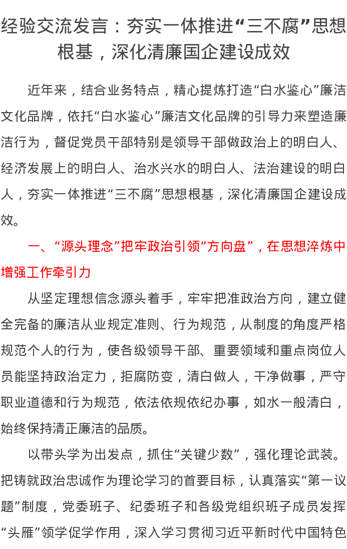 经验交流发言:夯实一体推进“三不腐”思想根基,深化清廉国企建设成效