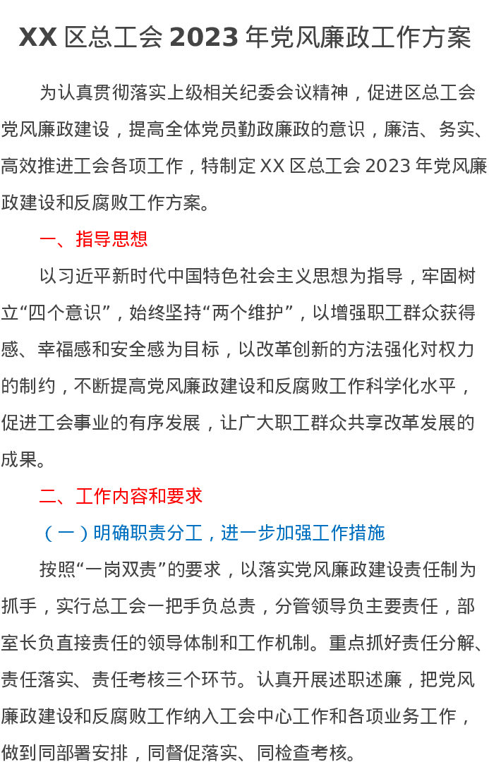 XX区总工会2023年党风廉政工作方案