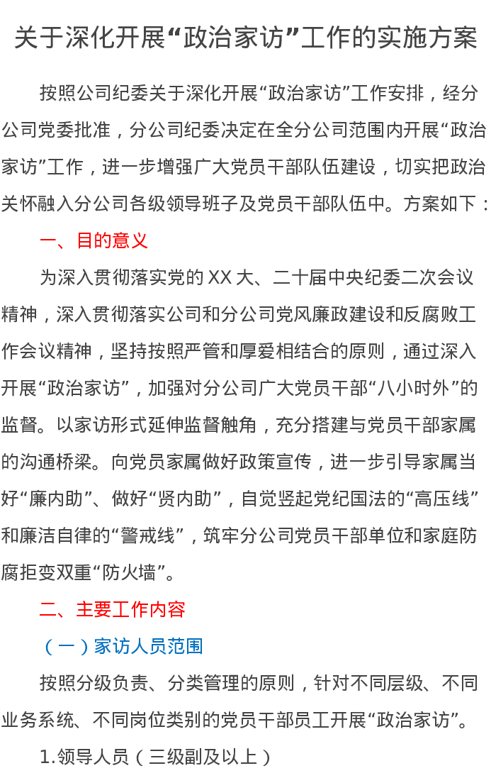 关于深化开展“政治家访”工作的实施方案