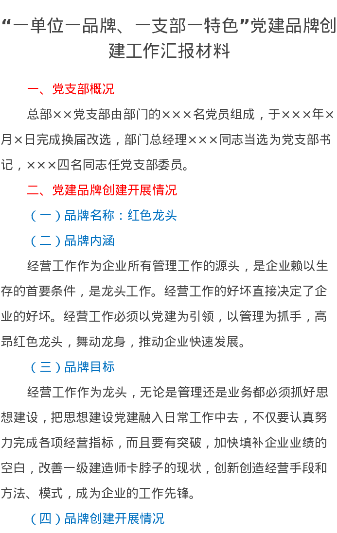 “一单位一品牌、一支部一特色”党建品牌创建工作汇报材料