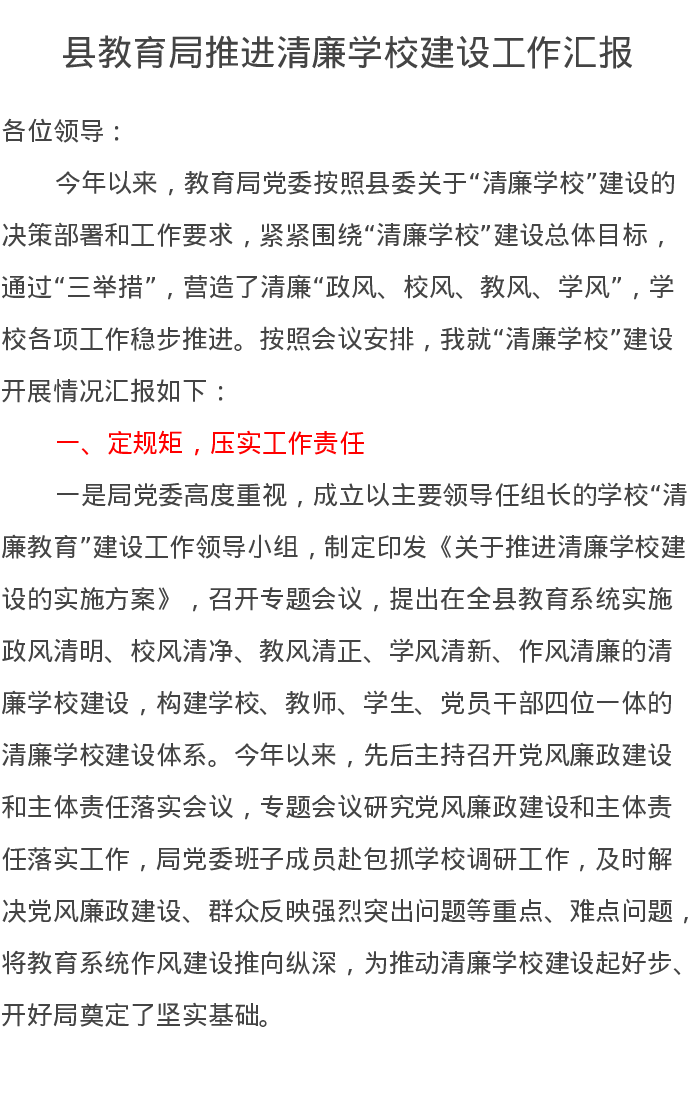 县教育局推进清廉学校建设工作汇报