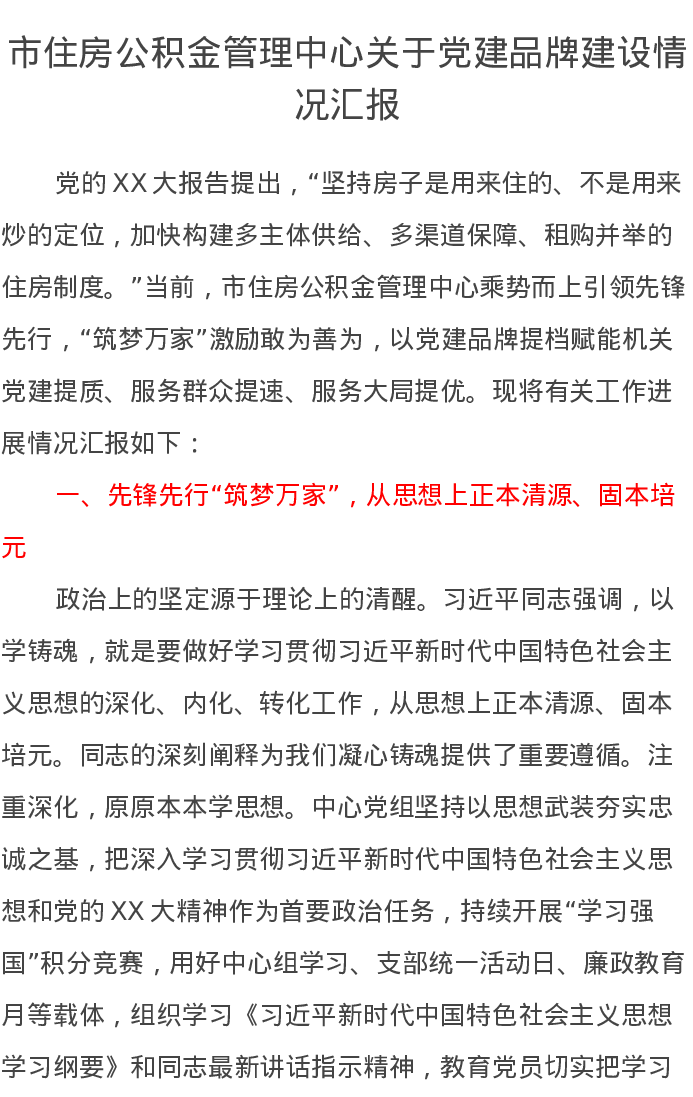 市住房公积金管理中心关于党建品牌建设情况汇报