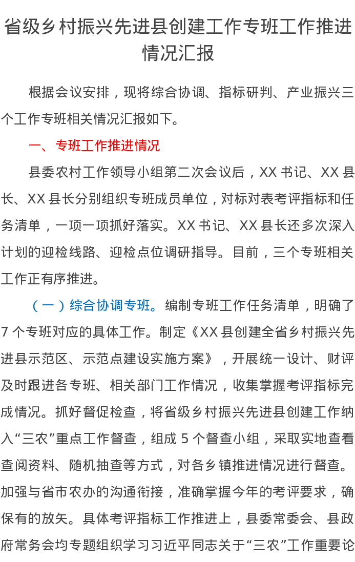 省级乡村振兴先进县创建工作专班工作推进情况汇报