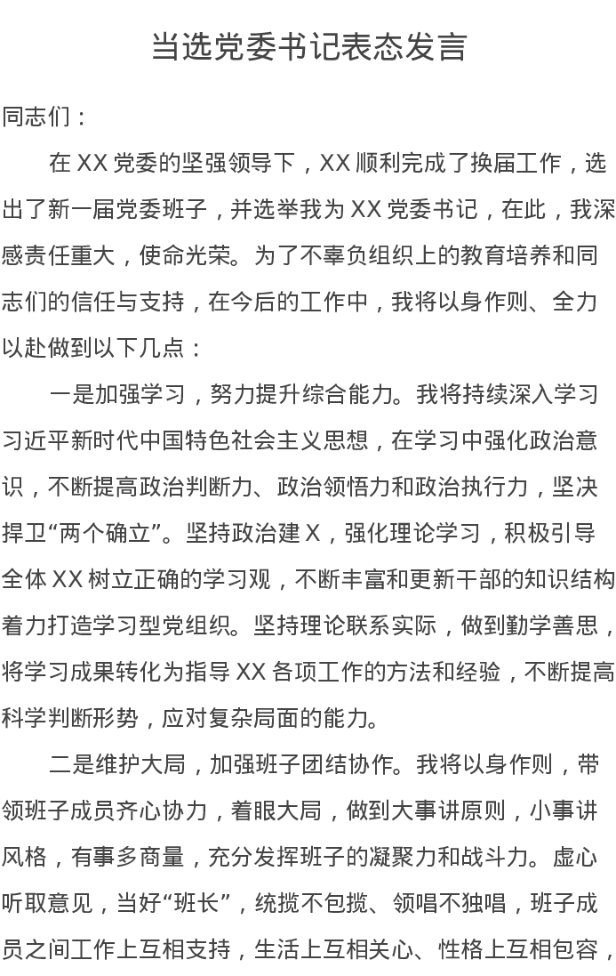当选党委书记表态发言