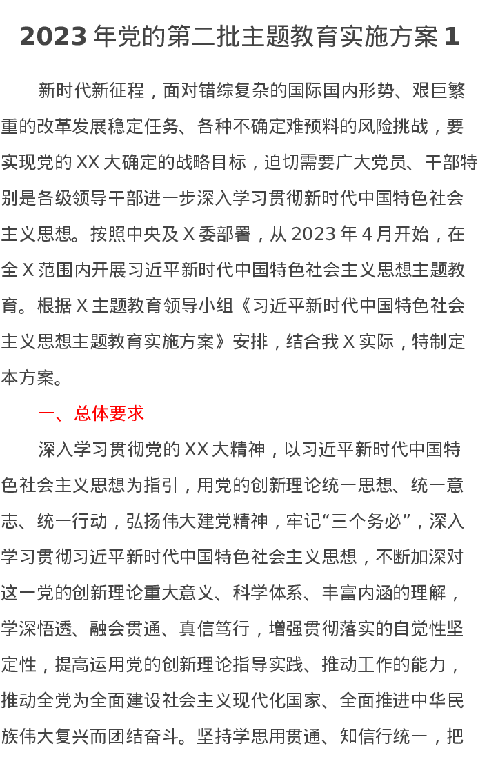 2023年党的第二批主题教育实施方案1(特色社会主义思想)