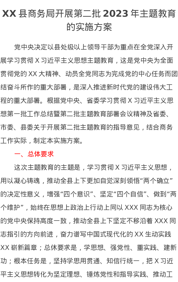XX县商务局开展第二批2023年主题教育的实施方案(特色社会主义思想)