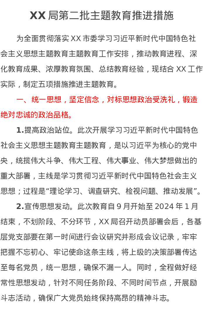 XX局第二批主题教育推进措施(特色社会主义思想)