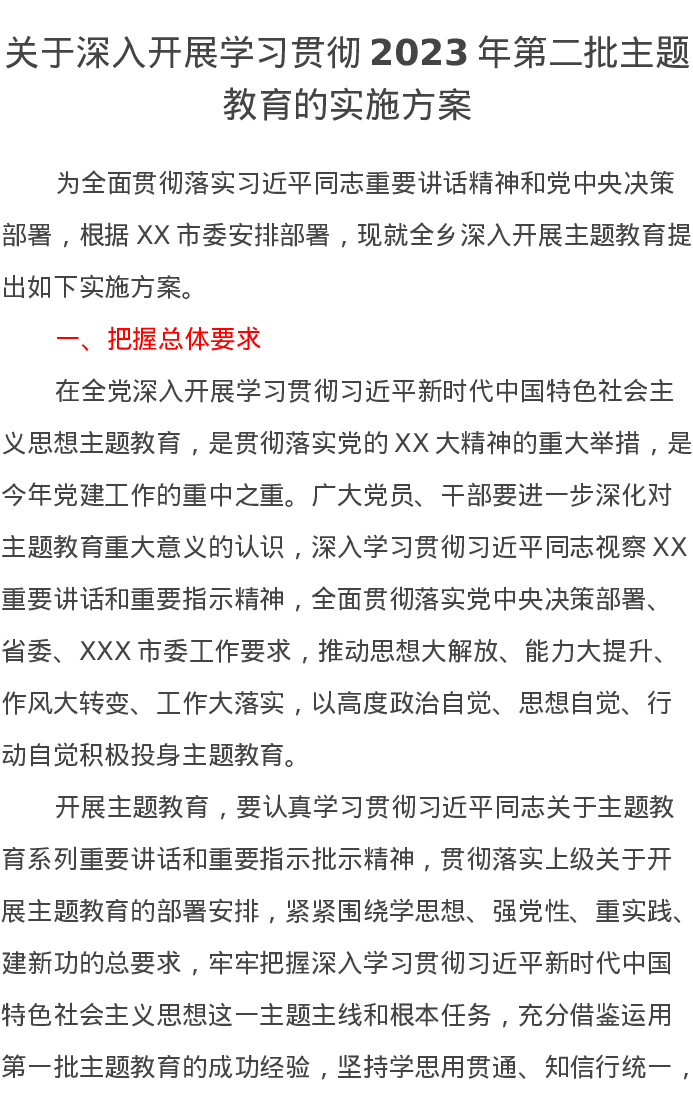关于深入开展学习贯彻2023年第二批主题教育的实施方案(特色社会主义思想)