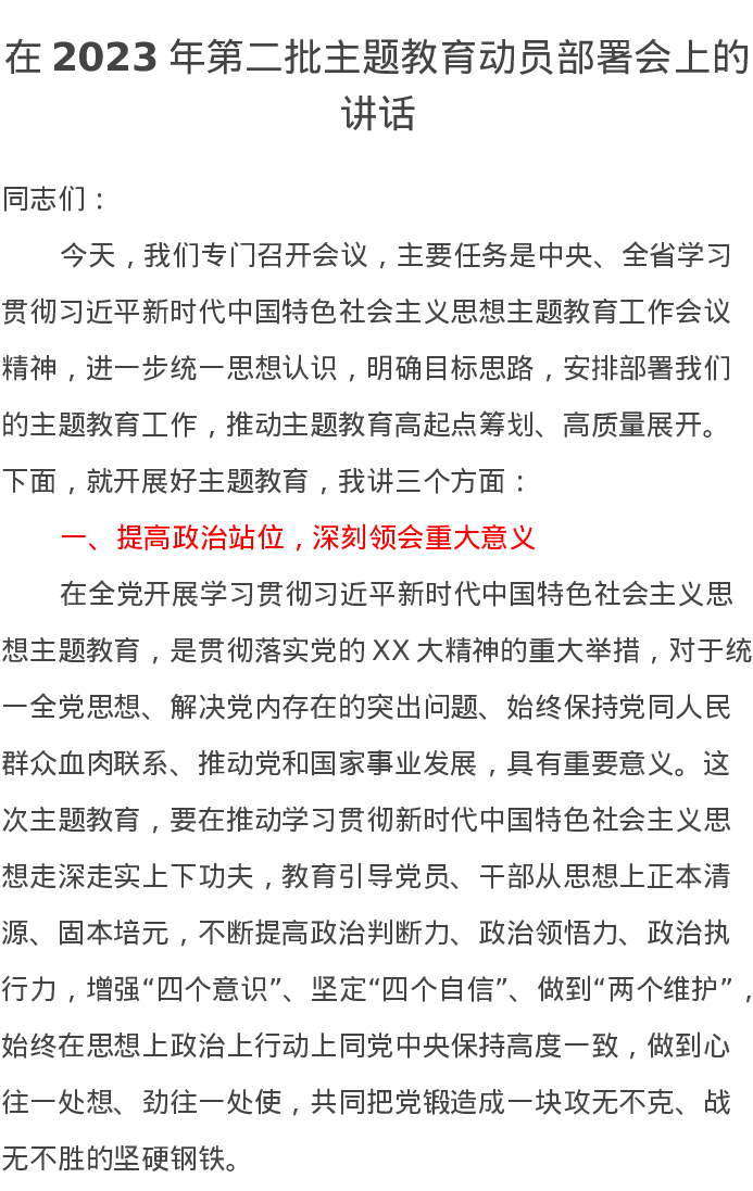在2023年第二批主题教育动员部署会上的讲话(特色社会主义思想)