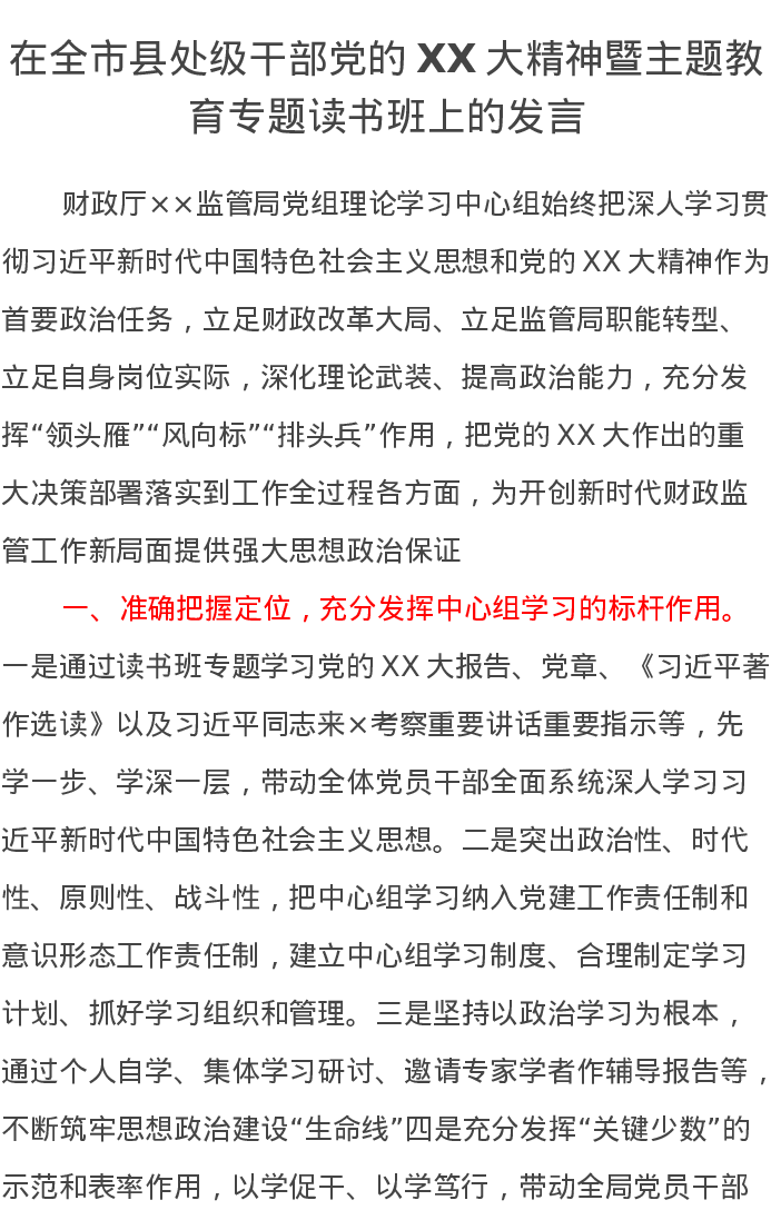 在全市县处级干部党的二十大精神暨主题教育专题读书班上的发言