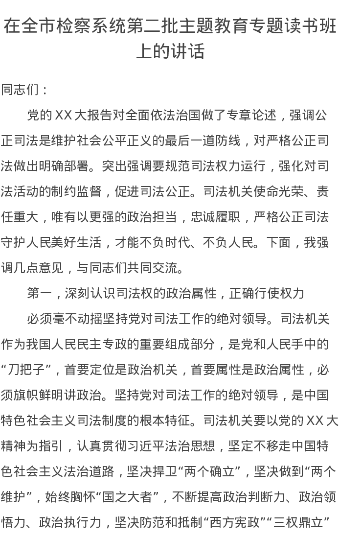 在全市检察系统第二批主题教育专题读书班上的讲话(特色社会主义思想)