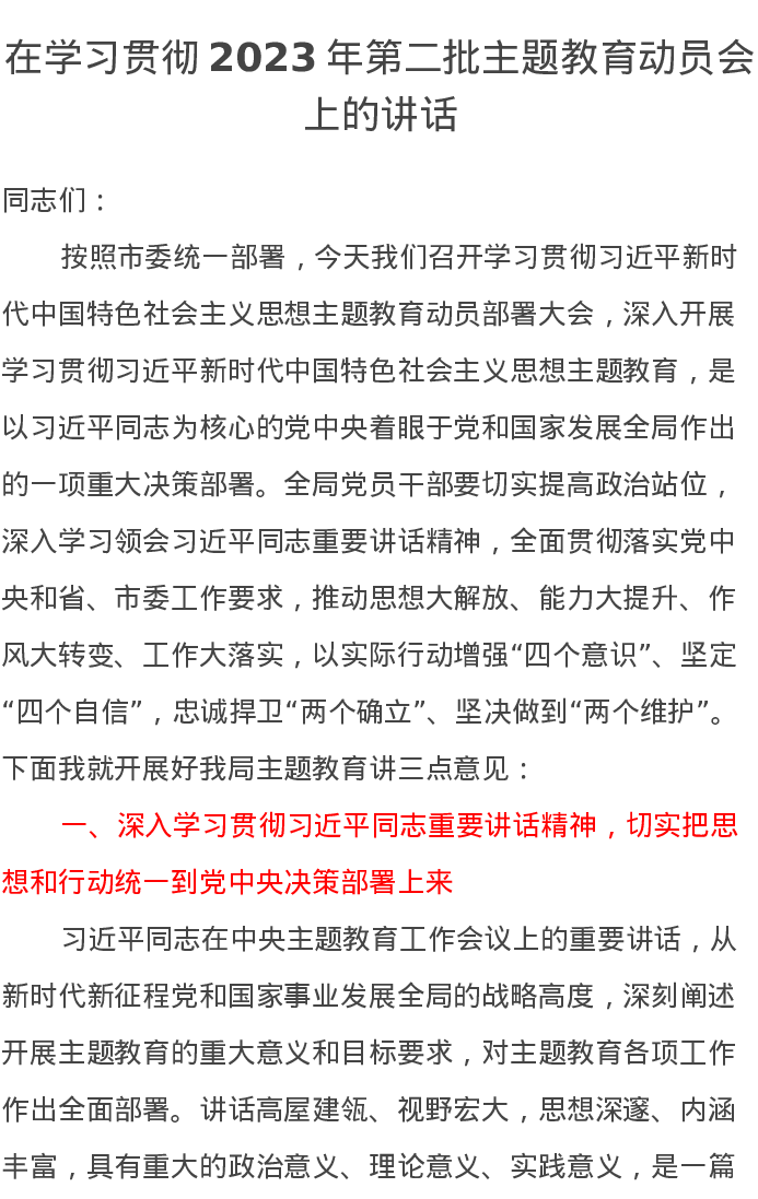 在学习贯彻2023年第二批主题教育动员会上的讲话(特色社会主义思想)