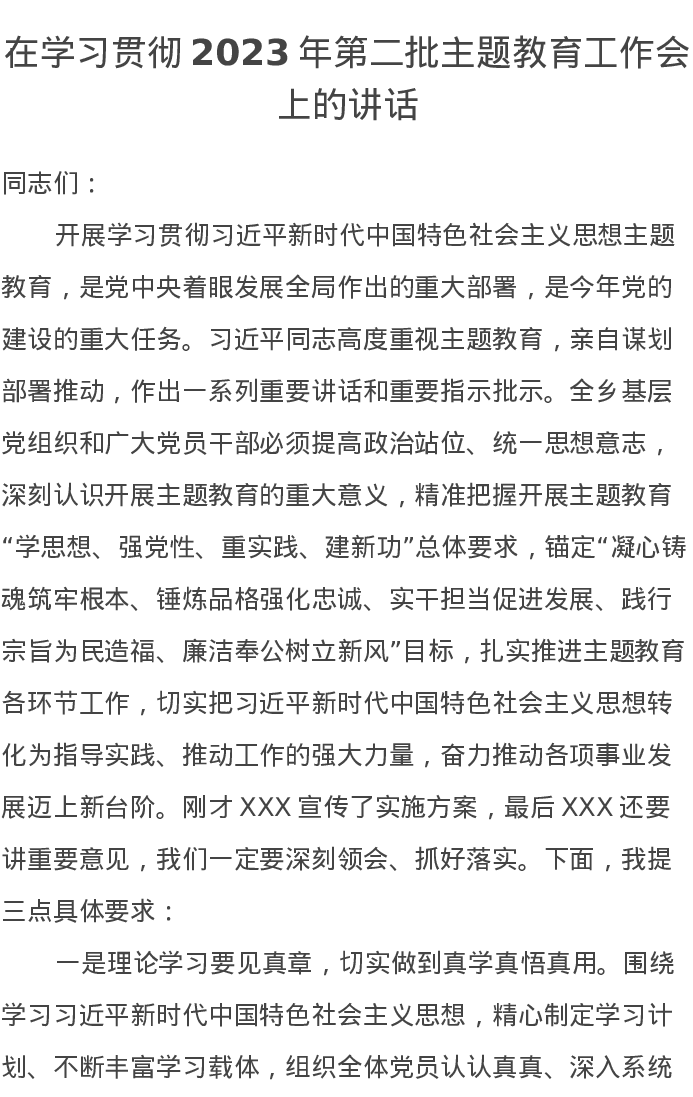 在学习贯彻2023年第二批主题教育工作会上的讲话(特色社会主义思想)