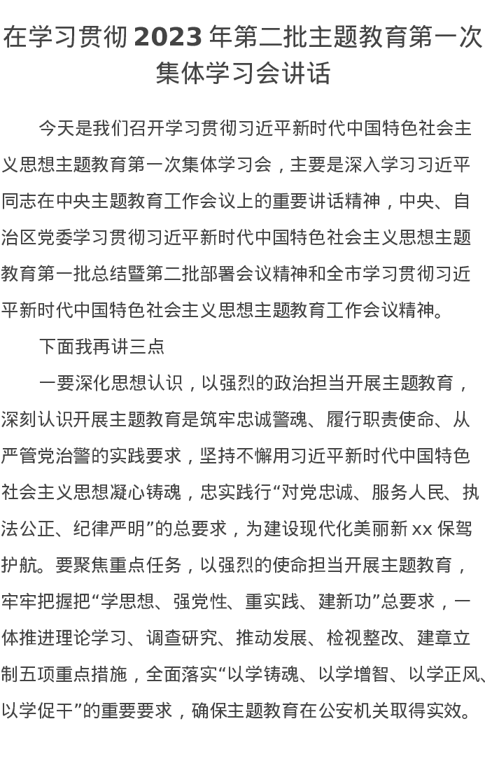 在学习贯彻2023年第二批主题教育第一次集体学习会讲话(特色社会主义思想)