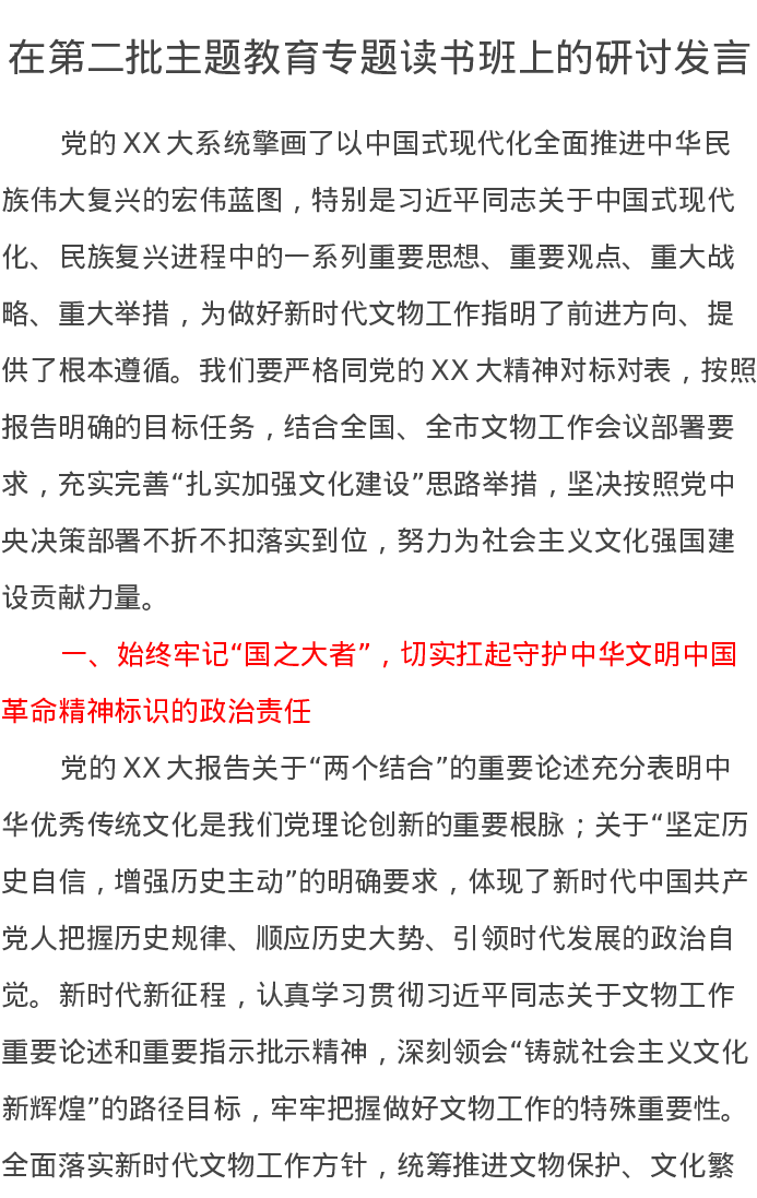 在第二批主题教育专题读书班上的研讨发言(特色社会主义思想)