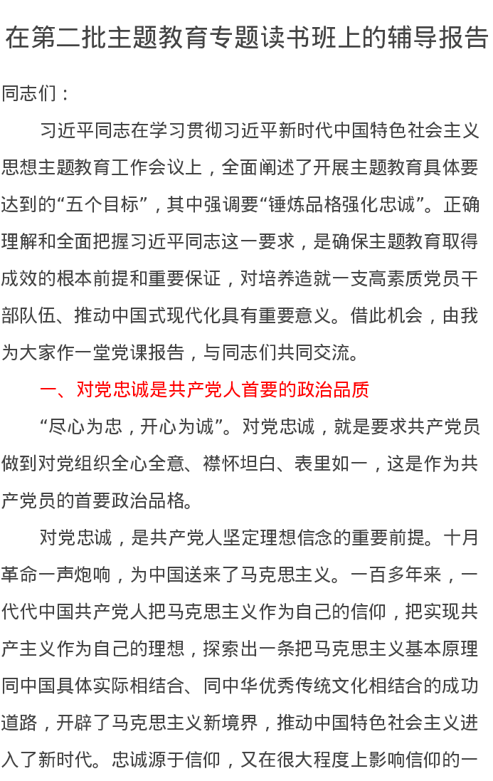 在第二批主题教育专题读书班上的辅导报告(特色社会主义思想)