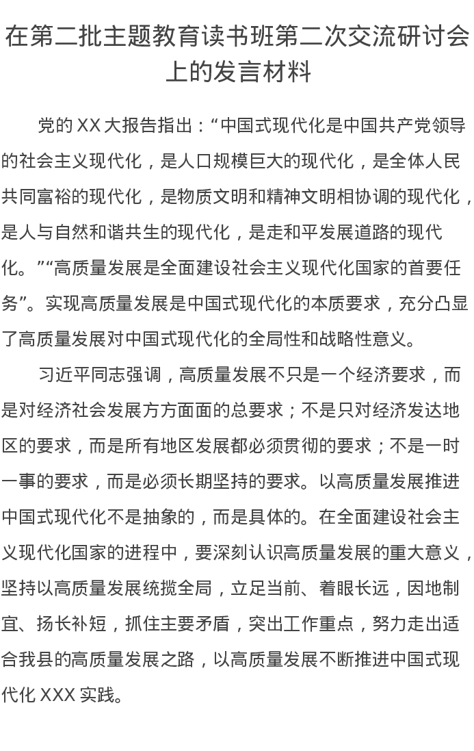 在第二批主题教育读书班第二次交流研讨会上的发言材料(特色社会主义思想)