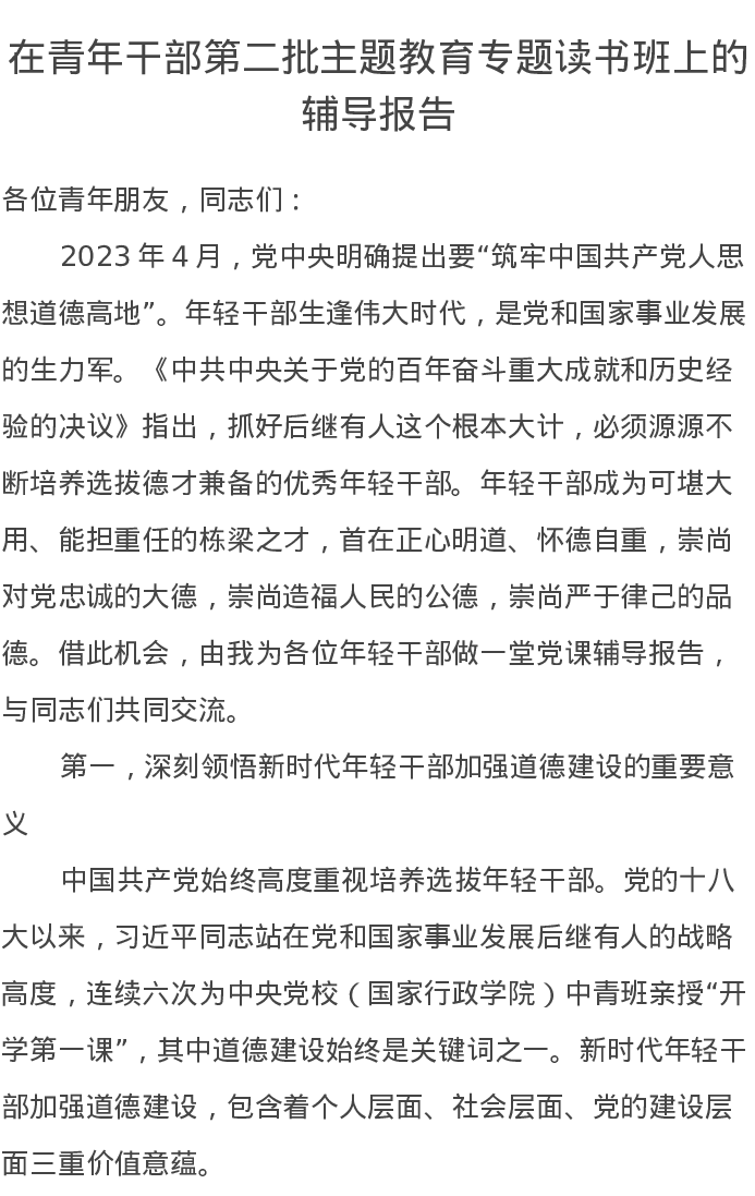 在青年干部第二批主题教育专题读书班上的辅导报告(特色社会主义思想)