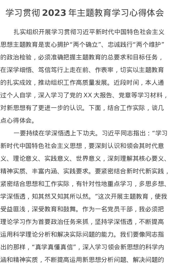 学习贯彻2023年主题教育学习心得体会22(特色社会主义思想)