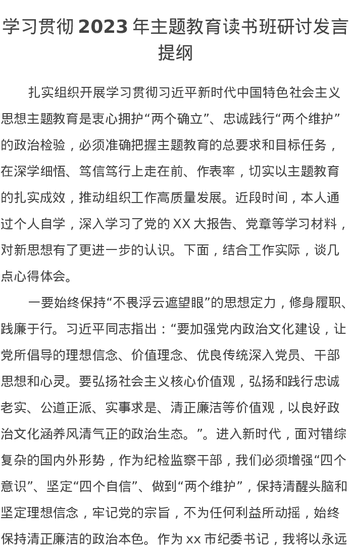 学习贯彻2023年主题教育读书班研讨发言提纲17(特色社会主义思想)