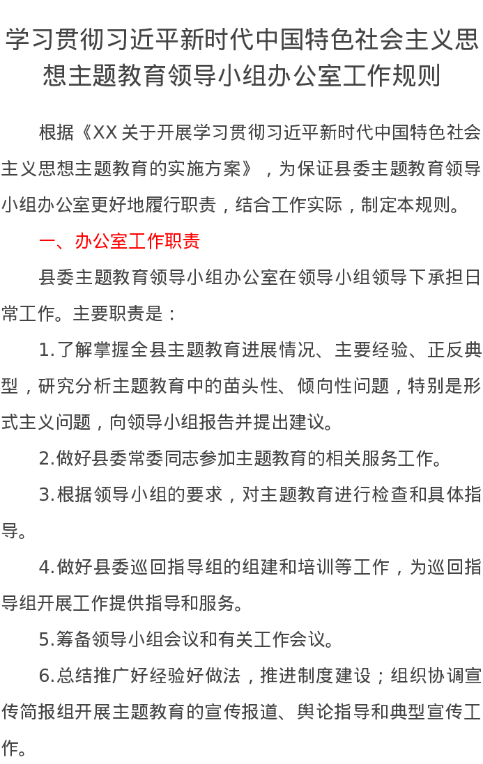 学习贯彻习近平新时代中国特色社会主义思想主题教育领导小组办公室工作规则