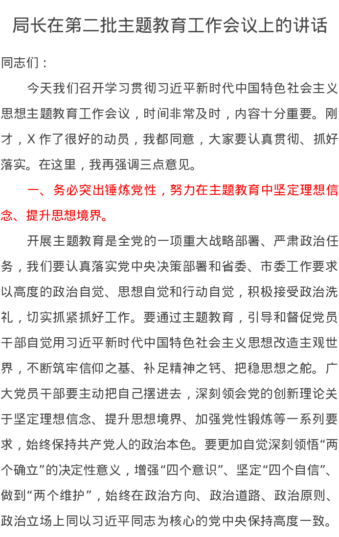 局长在第二批主题教育工作会议上的讲话(特色社会主义思想)