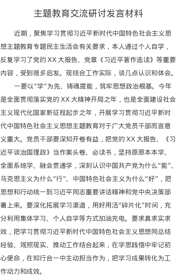 第二批主题教育交流研讨发言材料(特色社会主义思想)