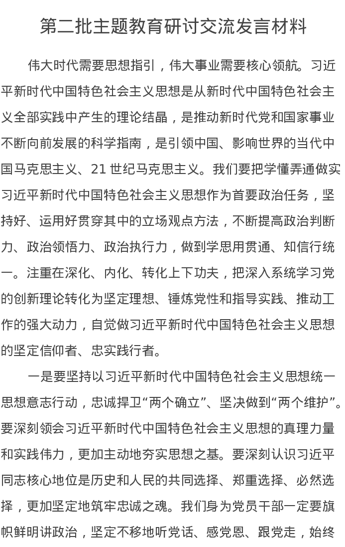 第二批主题教育研讨交流发言材料(特色社会主义思想)