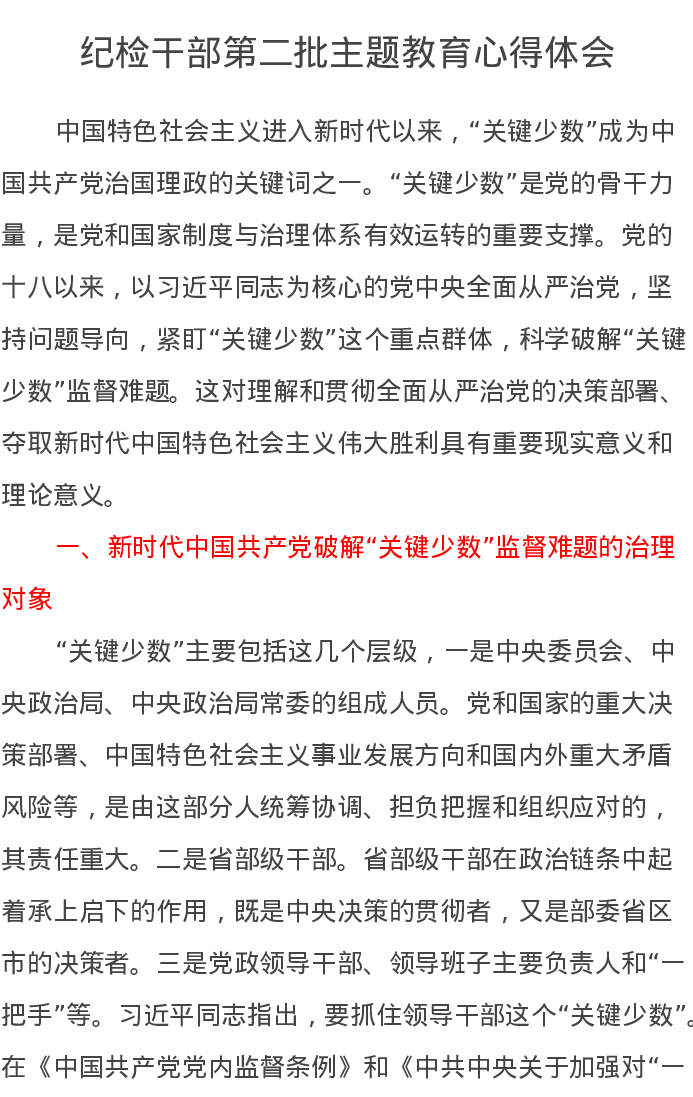 纪检干部第二批主题教育心得体会(特色社会主义思想)