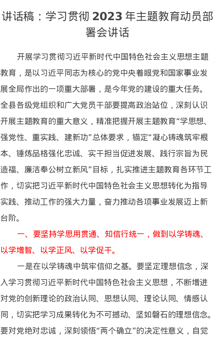 讲话稿:学习贯彻2023年主题教育动员部署会讲话(特色社会主义思想)